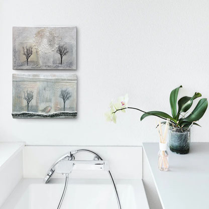 Tecnica mista (acrilico, carta, lana, carta velina e cera) su tela.